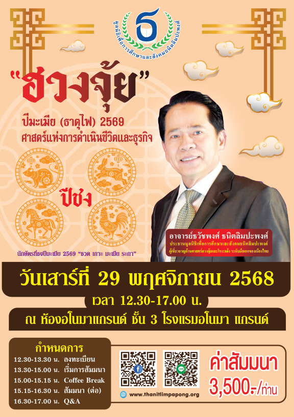 การสัมมนาประจำปี..."ฮวงจุ้ย" ปีมะเมีย (ธาตุไฟ) ๒๕๖๙ ศาสตร์แห่งการดำเนินชีวิตและธุรกิจ